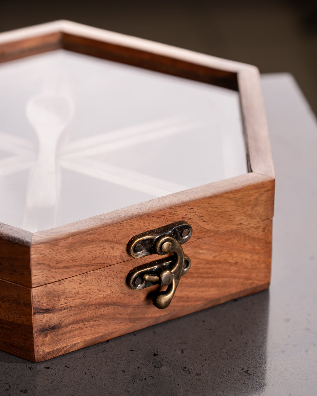 Bring home the Heart & Homes HexaCraft Sheesham Wooden Spice Box and elevate your kitchen experience today!